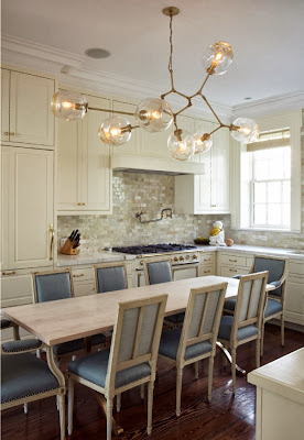 In-kitchen dining is another place you shouldn't skimp on lighting. A pendant or chandelier grounds the area and makes it look like it belongs there.